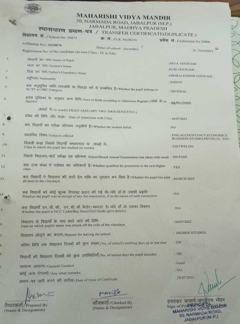| 5 | 10906 | ARYA GOSWAMI | XII | ||