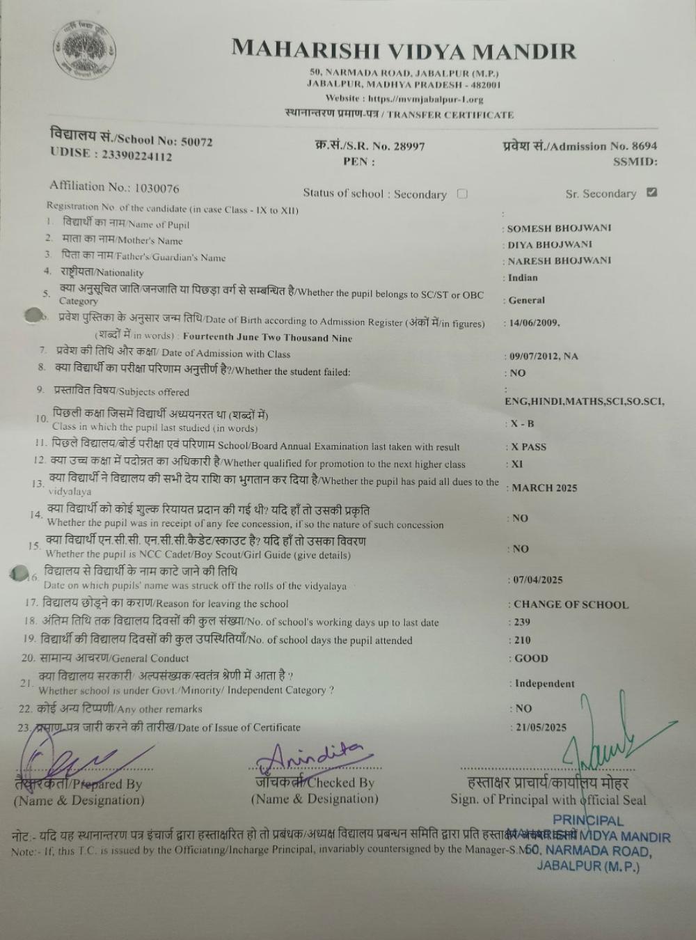 | 12 | 8694 | SOMESH BHOJWANI | X | B |
